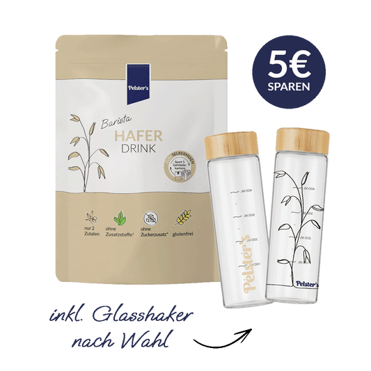 Wenn du hochwertiges Haferdrinkpulver kaufen möchtest, bist du bei Pelster’s genau richtig. Unser Haferdrinkpulver wird aus sorgfältig ausgewählten Rohstoffen hergestellt, ist vegan, laktosefrei, glutenfrei, kommt ohne Zusatzstoffe, ohne Aromen und ohne Zuckerzusatz aus und bietet dir eine nachhaltige, flexible Alternative zu flüssiger Hafermilch im Karton. Statt schwere Packungen zu schleppen, mischst du dir deinen Haferdrink einfach frisch an – genau dann, wenn du ihn brauchst.