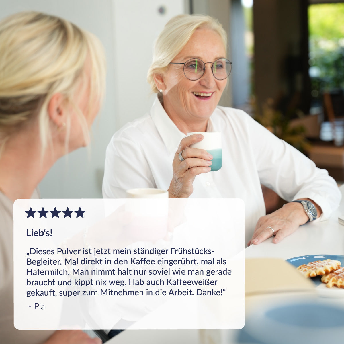 Kleiner Tipp: Du kannst das Pulver auch direkt in den Kaffee einrühren.