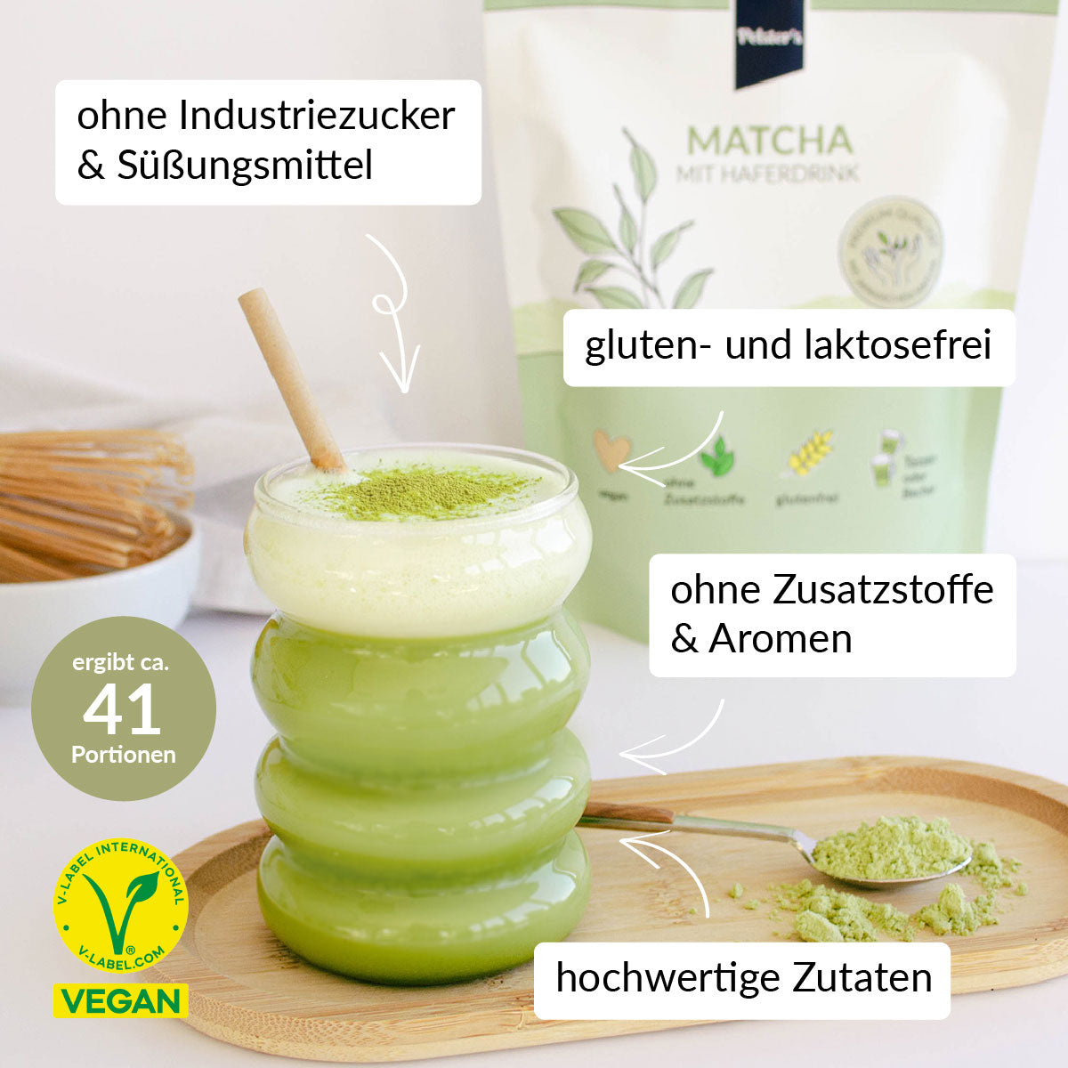 Matcha mit Haferdrink (500 g) – grüner Energie-Boost mit Hafercremigkeit.