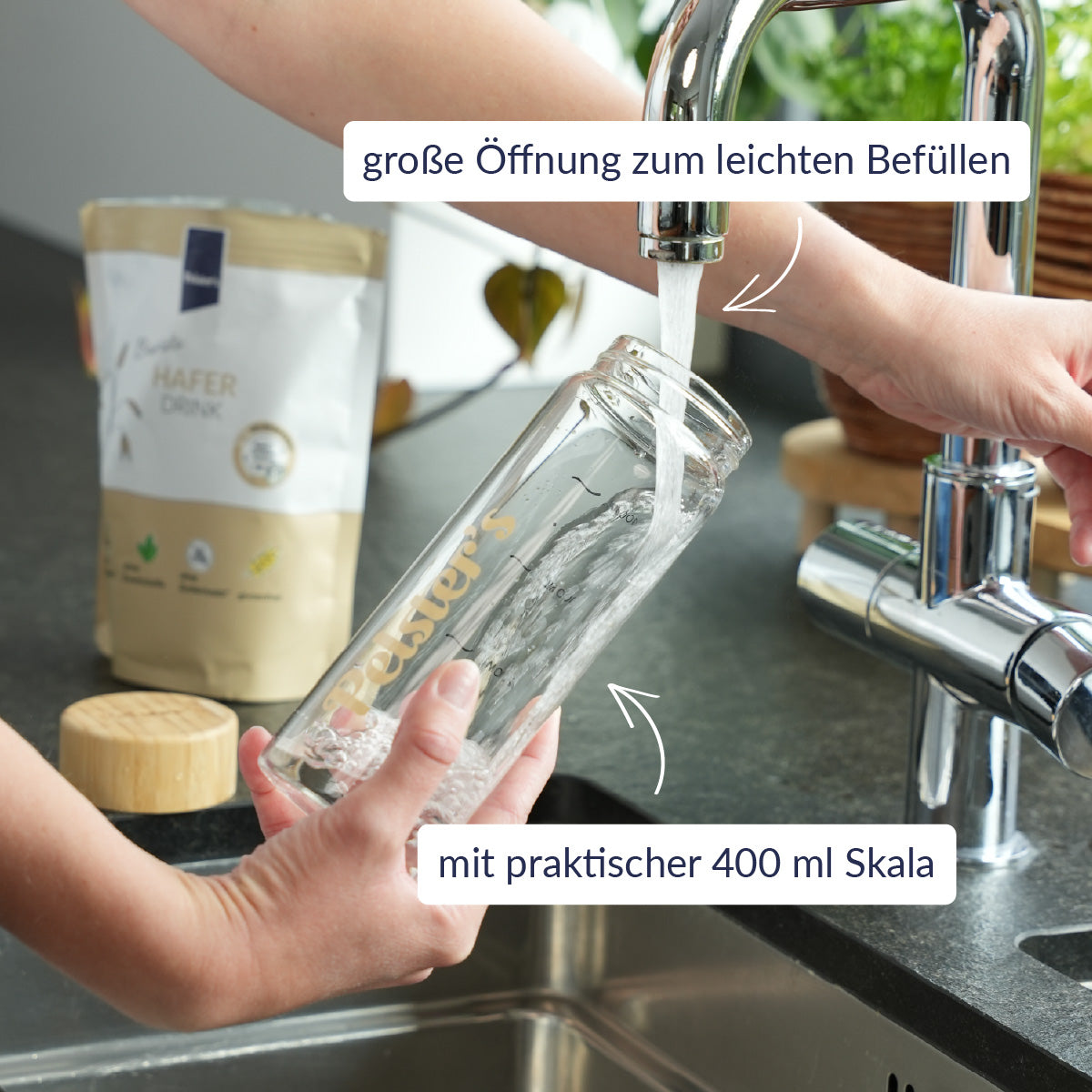 Aber klar: Es ist und bleibt Glas – also geh sorgsam damit um. Sollte doch mal etwas zu Bruch gehen, kannst du bei uns jederzeit Ersatzflaschen nachbestellen.